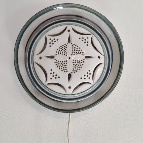 Dette er en industriell pendellampe med en grå metallskjerm og en klar, riflet glasskuppel. Høyde 40cm, bredde 30cm med rikelig med kabel og hengtråd. Pærer virker. Om de er dimbare er usikkert, men vil anta det 🤷🏼 merke/design ukjent. Pærer (utåndings) virker. Ser ut som de lyser grønt på bilde, men de lyser skarpt.