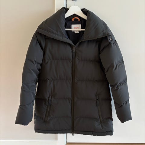 Meget pent brukt SWIMS Alberta Parka i svart farge, størrelse L for dame. Ingen rifter, hull eller mangler som jeg har oppdaget. Jakken er fylt med dun og har et horisontalt fyll med resirkulert dunfyll og høy tubekrage for ekstra varme. Stor og god hette med snøring. Materialet inkluderer resirkulert stoff, Polartec fleece, og 100 % resirkulert polyester. Parkaen har fleeceforede lommer. Jeg kan betale for frakt, hvis jakken må sendes (kun innlands) Ferdig prutet.