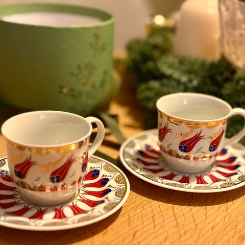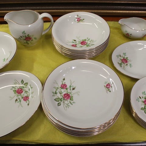 servise med blomstermotiv.