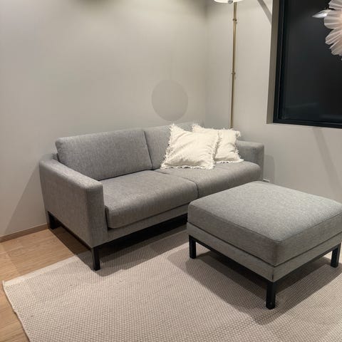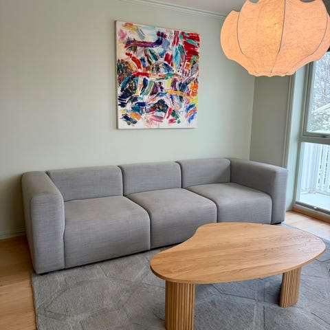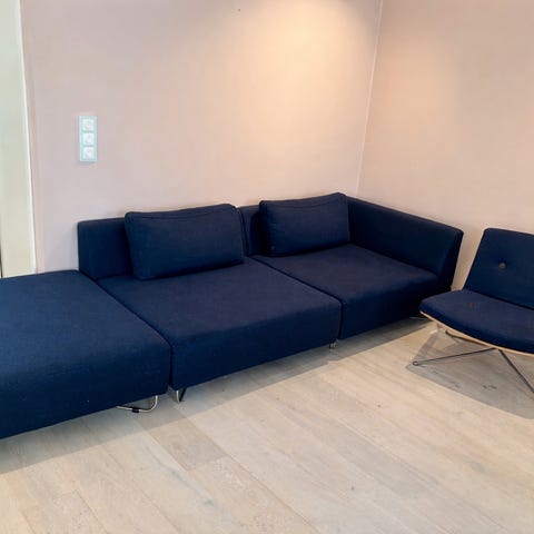 Pen angle modulsofa fra Bolia til salgs. Sofaen er kjøpt i februar 2025 og har ingen bruksmerker. De to putene til venstre i samme farge som sofa følger med.