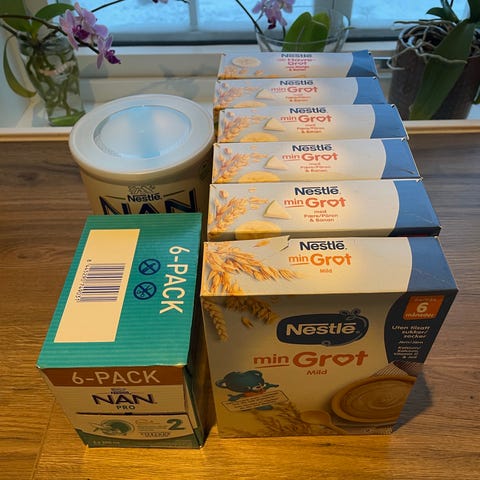 Selges pga kort holdbarhet fra når barnet starter med fast føde.