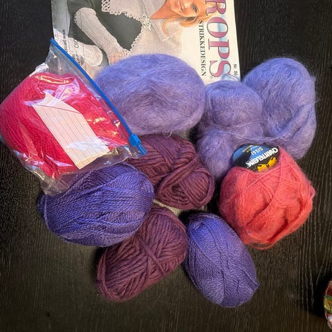 Selger litt restegarn i både ull og bomull, sammen med et par rundpinner, et sett med strømpepinner og et par lange pinner. Håper noen kan få glede av dette :)
