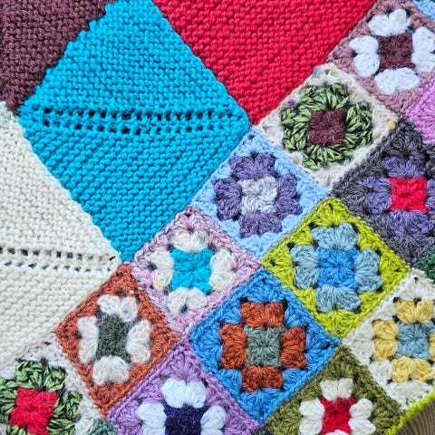 Strikket lappeteppe/slumreteppe rimelig tilsalgs