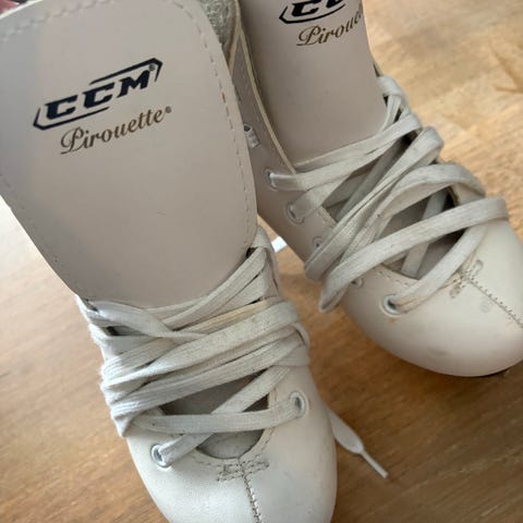 CCM Andre skøyter barn str 31 i hvit farge. Skøytene er laget for barn og har tradisjonell snøring. Bladene er av metall med HK-merking. Skøytene er produsert i Kina.