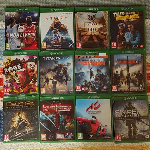 Spillene dekker ulike sjangre som action, racing og eventyr, og er kompatible med Xbox One-konsollen.