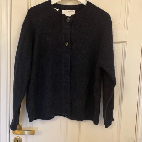 Lang cardigan i en fin grønn farge str M fra Selected femme. Pent brukt, hel og pen.