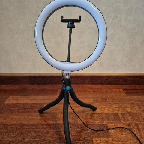 Ringlys med stativ og telefonholder