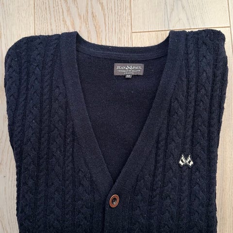 Jean Paul Ull genser i beige farge, størrelse M for herre. Laget av ullmateriale med høy hals. Litt "oversized" genser.