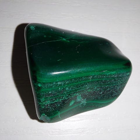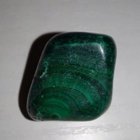Malakitt tromlet stein med fine mønstre. Denne veier 18gram og er ca 2,4cm x 3,5cm