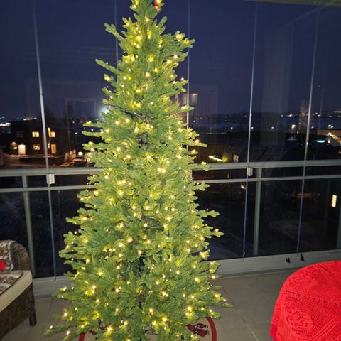 Pentnå mer naturtro juletre med innebygde lys! Pent å dekorativt. Ca 250 høyt. Nypris 4990.