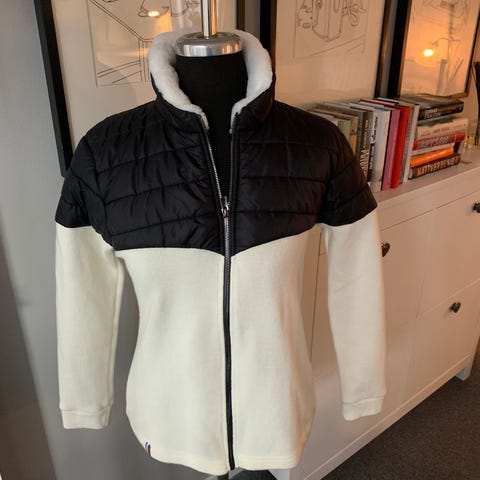 Jakke fra skidress fra Frankrike og Italia i offwhite og mørk blå på skuldrene
