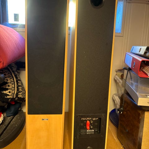 Selger et par Argon Audio Forte A4 passive høyttalere. Dette er solide hi-fi-høyttalere med svært god lydkvalitet, mye bedre enn vanlige PC-høyttalere og Bluetooth-bokser.