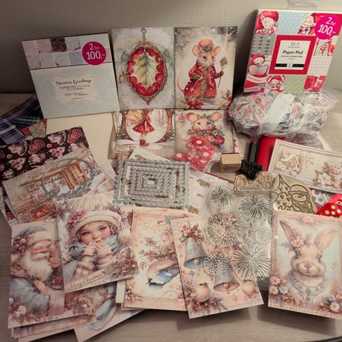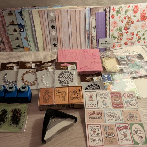 Scrappepakke med stempler, dies og papir