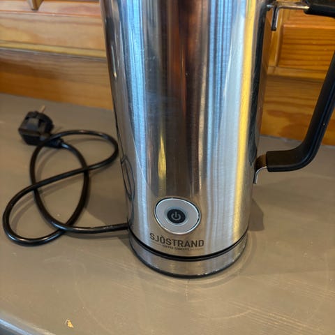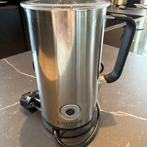 Sjøstrand melkeskummer i rustfritt stål med lokk og håndtak. Egnet for oppvarming og froting av melk. Enkel å bruke.