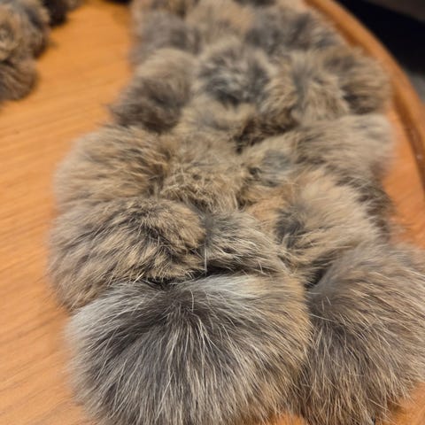 Imitert skinn og pels. Aldri brukt.