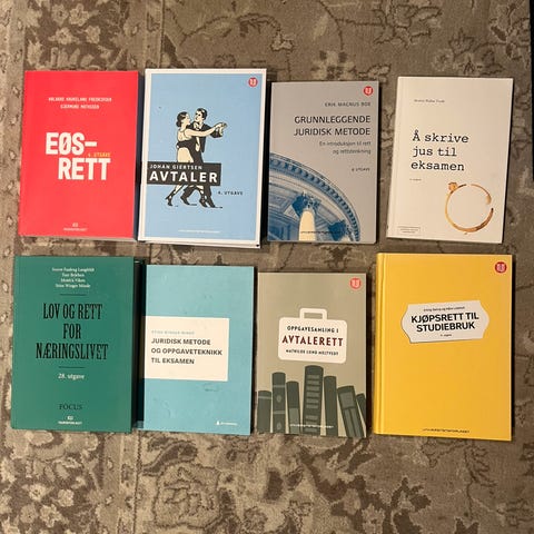 Selger disse aldri brukte bøkene til faget forretningsjus.