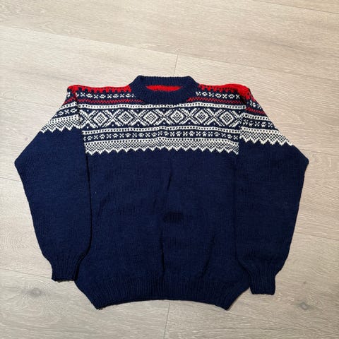 Nydelig hjemmestrikket genser i deilig ull. Str 10 år