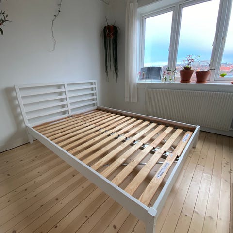 Må hentes. Sengen er nå demontert og lagres innendørs.
