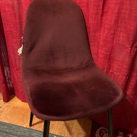 4 stk. Tokyo spisestoler gis bort. Sete og rygg i lysegrått tekstil med knapper. Understell i hvitpigmentert eik. Original pris for 5 stoler var 3995. Noen av stolene mangler noen knapper. En stol har knekt et ben som er limt. Den er i bruk og holder fint.
