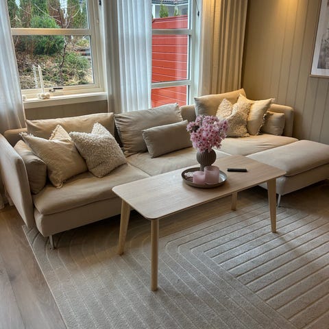 Sofaen har mye sittekomfort igjen, da den har stått i stuen som brukes lite.
