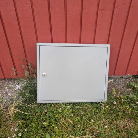 Stort vegghengt sikringskap frq ABB. Inneholder sikringer m samleskinne.