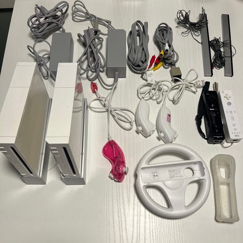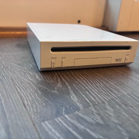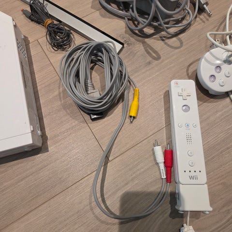 Nintendo Wii spillkonsoll med tilbehør inkludert en Wii-fjernkontroll, en Nunchuk-kontroller, strømforsyning og AV-kabler. Gjerne gi bud. Har bare ligget på loftet for noen år.