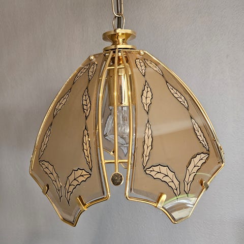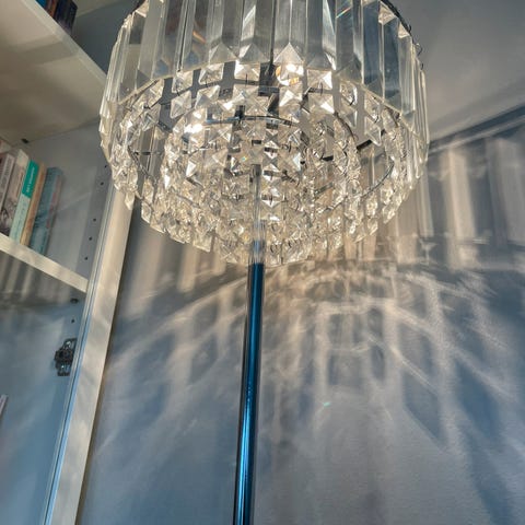 Lampe selges. Den er gullfarget, og kjøpt på en interiørbutikk i Moss. Men den er nedlagt. Nypris 2000kr. 62 cm høy. Og 38 cm i diameter.