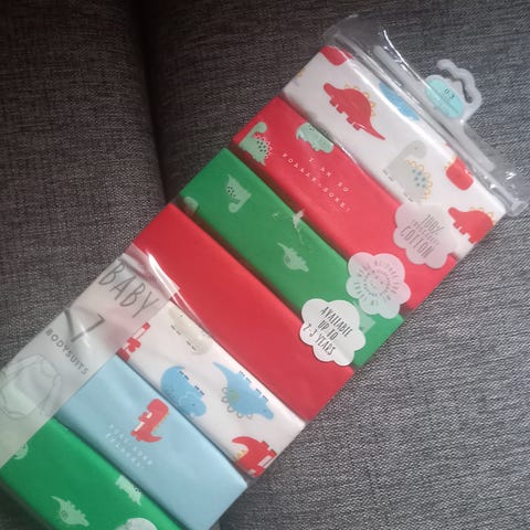 5 pack kortarmet body fra Disney, str 0-3 mnd (50/62). Alle har forskjellige farver og motiv og kan brukes av både gutt og jente. Kjøpt i England og er fra merket George. 100% bomull. God kvalitet.