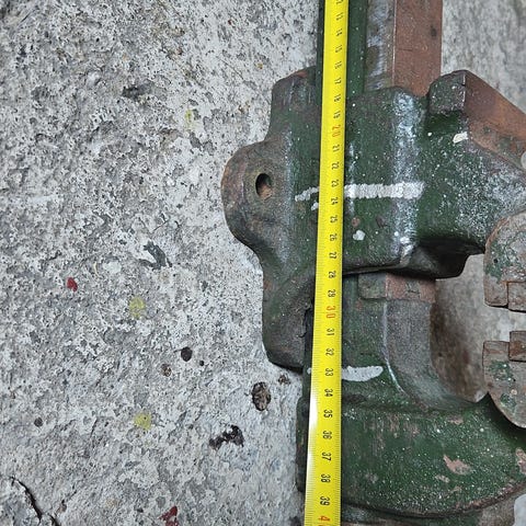 Brukt i metall- og maskinverksted. Skyvestang, tydelig merking “ADD 2 INCHES”.
