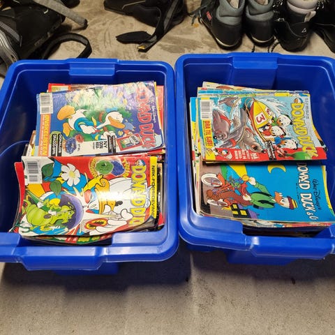 Samling av Donald Duck tegneserier med flere utgaver. Inneholder ulike historier og illustrasjoner med Donald Duck og andre karakterer fra serien. Ca 300 blader.