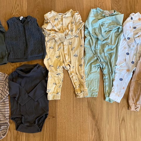 Selger en klespakke hovedsakelig i størrelse 80, totalt 12 plagg, brukt av ett barn.