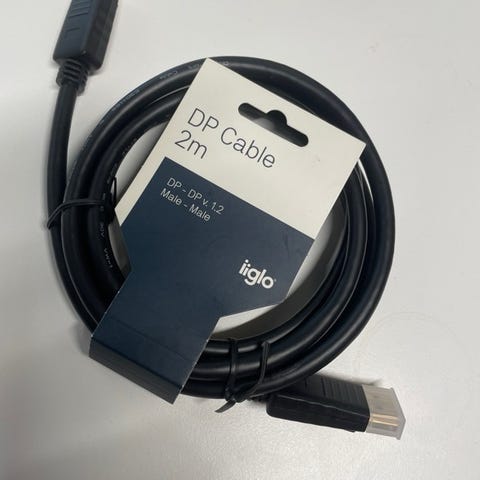 Strømkabel og HDMI-kabel følger med.
