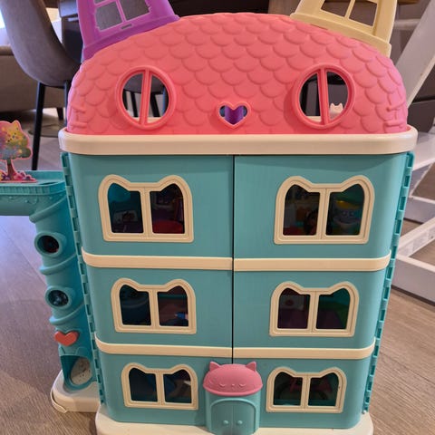 Gabbys Dukkehus leke i plast med flere rom og dører som kan åpnes. Med tilbehør. Svært lite brukt