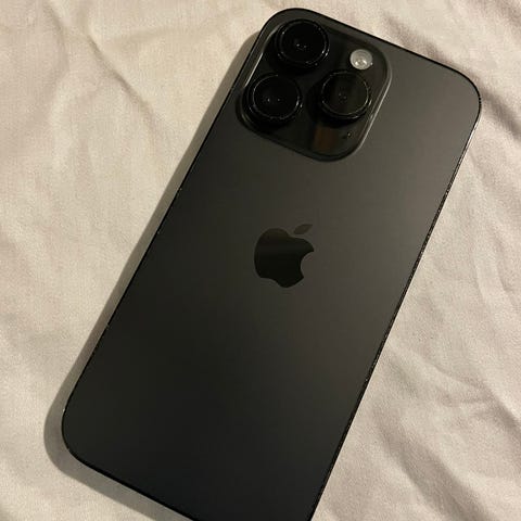 iPhone 14 Pro Max mobiltelefon med 128 GB lagringskapasitet i lilla farge. Ingen skader. Batterikapasiteten er 91 %