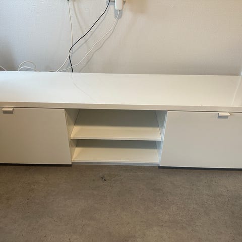 Den er i hvit høyglans og passer veldig godt inn i de fleste rom. Se bruksmerke på bilde. (bør være enkelt å male over)