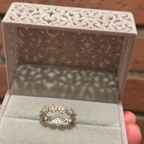 Zirconia diamanter i sølv ring. Fotografert bed siden av hvitt gull og diamanter Q