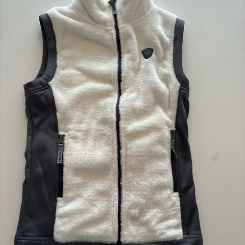 CRW Classic Riding Wear softshellvest o størrelse S. Vesten er svart med rosa detaljer og laget av 95 % polyester og 5 % elastan. Den har glidelås foran og lommer med glidelås.