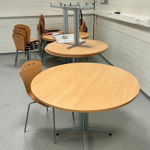 Stolene har en del bruksmerker men er ellers solide. Kjøpt på finn for et år siden men ble aldri tatt i bruk hos meg. Må hentes. 500kr for alle stolene