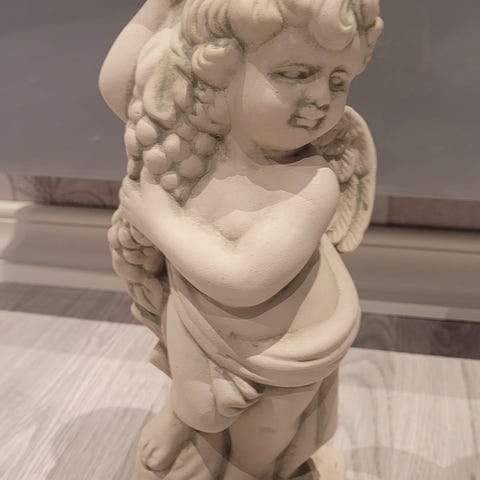 Vakker Engel saltsten-lampe. Står på tre-sokkel. Og det er bryter på ledningen