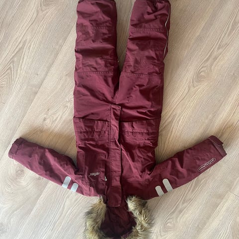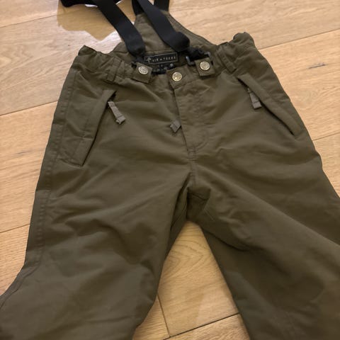 Reflex barnebukse i størrelse 104, laget av polyester. Buksen har en grå farge og passer til både gutte og jente barn. Materialet består av 96% polyester og 4% elastan, med foring i 100% polyester. Produktet har elastisk midje og forsterkede områder på knær og bakside. Buksen kan vaskes på 40 grader og tåler ikke tørketrommel. Det er et mindre hull i stoffet på ene benet og er litt slitt i rumpa. Trenger noen lapper, og etter hvert nye strikker i beina.