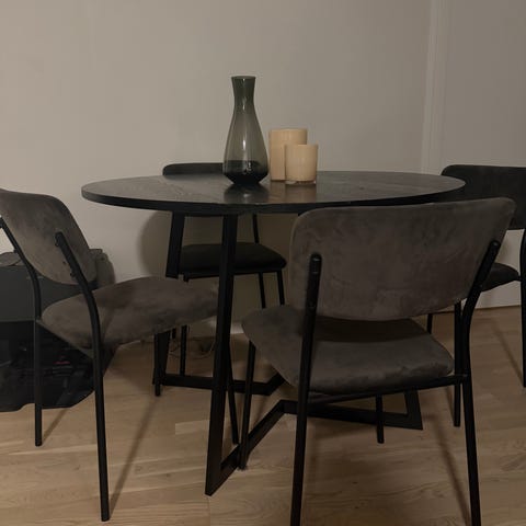 Bord og seks stoler. Pent brukt.