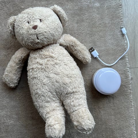 Moonie bamse selges da vi glemte helt ut å bruke den😂 Har hvitt og grønt lys, samt rennende vann/hjertelyd.