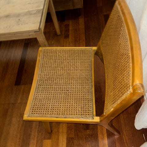 Rygg og sete i tre.