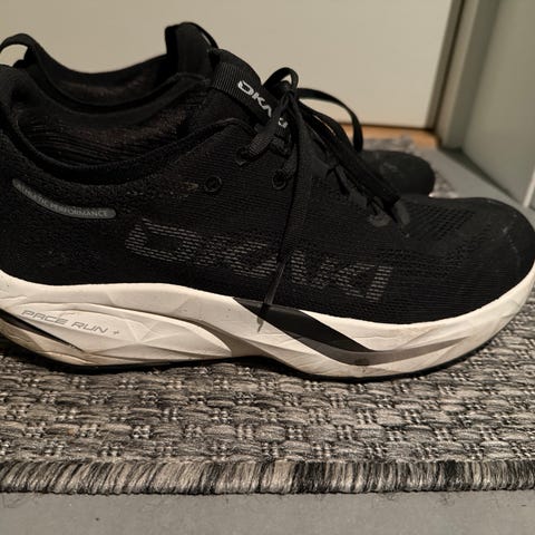 Okaki /waterproff tur/ løpesko i størrelse 43, svart farge. Egnet for løping, designet for å gi støtte og komfort under aktivitet.