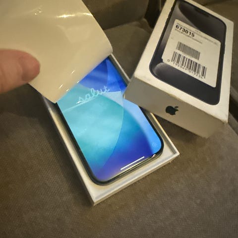 Apple iPhone 15 Pro mobiltelefon med 256 GB lagringskapasitet. Modellen har en farge i gråtoner og er utstyrt med avansert kamerateknologi. Telefonen har en moderne design og oppdaterte funksjoner for mobilbruk.