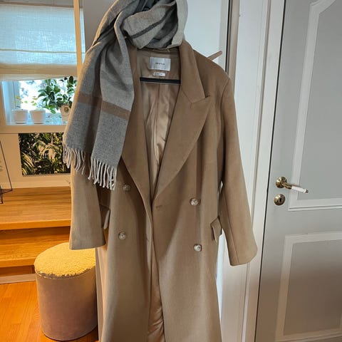 Kåpe fra Zara, str L. Jakken er laget av ullmateriale og har en beige farge. Betaling = Vipps