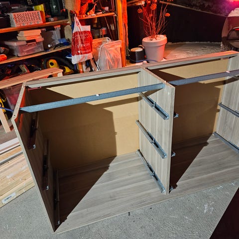 Brukt kommode. Funker helt fint. Mangler et par dekklister mellom to skuffer. Gis bort mot henting.