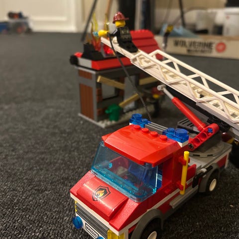 LEGO City brannstasjon og brannbiler med detaljer som inkluderer flere minifigurer og tilbehør. Settet består av en brannstasjon med flere etasjer, brannbil med bevegelige deler og tilhørende utstyr. Passer for bygging og lek innen LEGO City-temaet.