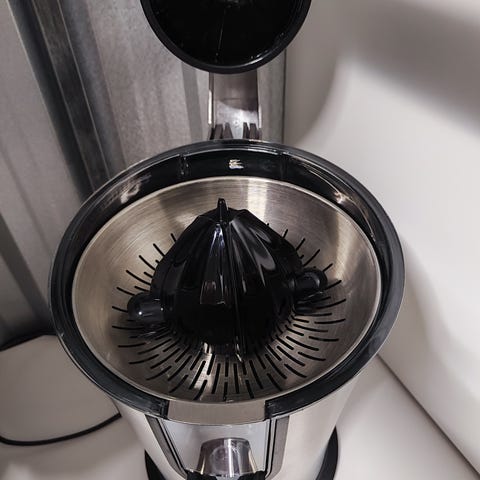 OBH Nordica elektrisk sitruspresse i svart farge. Inkluderer avtakbar sil og pressedel. Designet for effektiv pressing av sitrusfrukter. Strømkabel med plugg for enkel tilkobling.