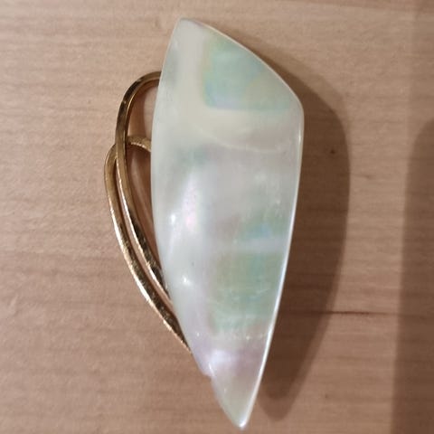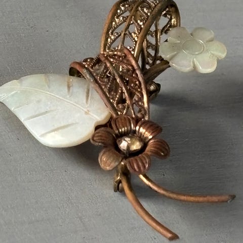 Srlges flott retro brosje. Jeg tror blomstene er laget av skjell.